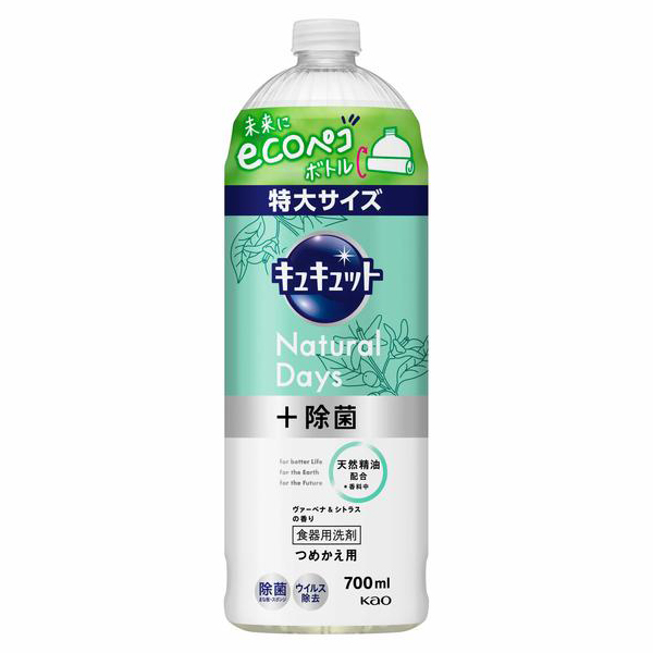 [花王]キュキュット 食器用洗剤 ナチュラルデイズ +除菌 ヴァーベナ&シトラスの香り つめかえ用 特大 700ml(詰替 皿洗い 食器洗い キッ