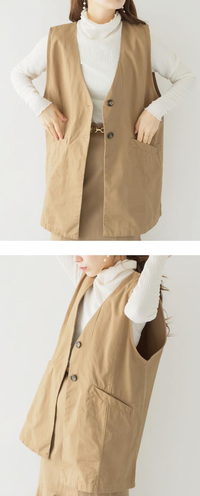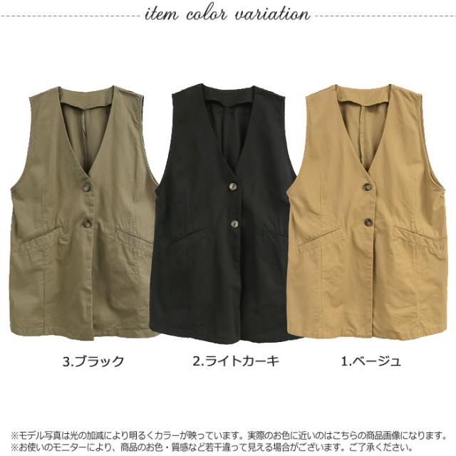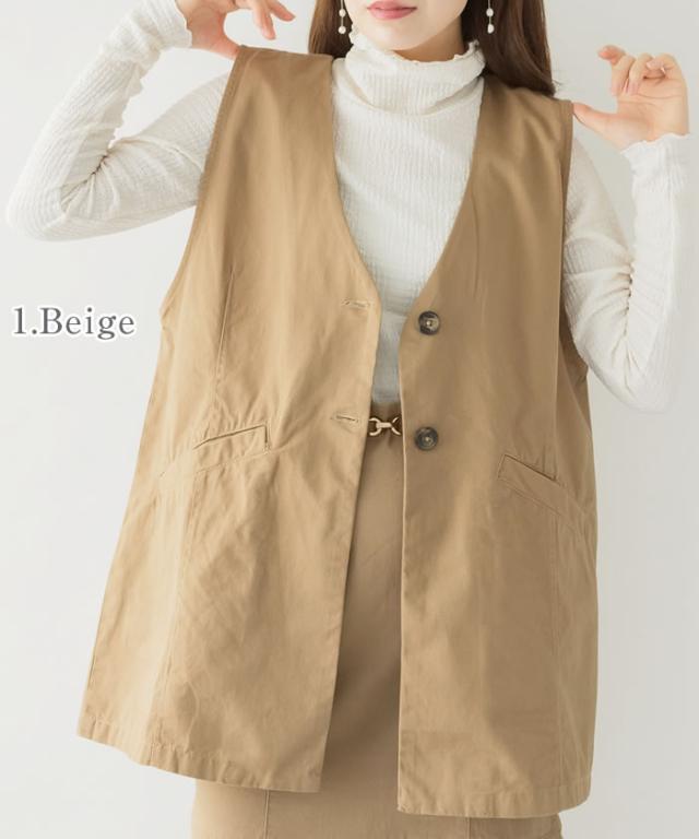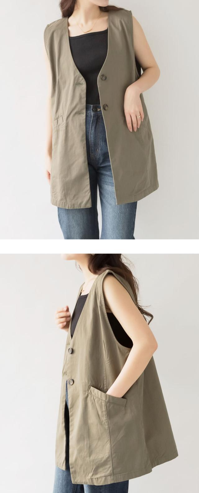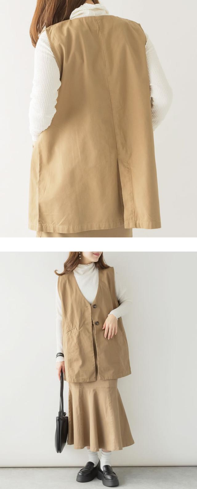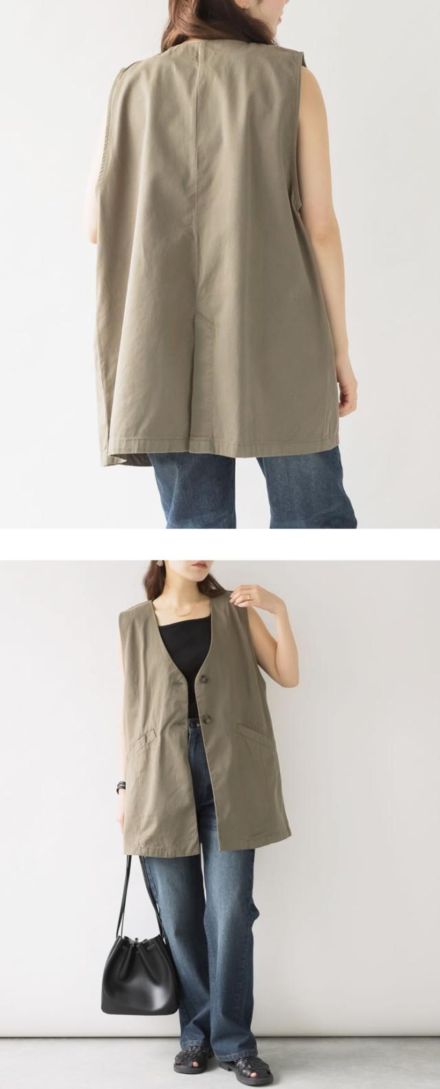 ジレ ベスト レディース ゆうメール便送料無料 ノーカラー コットン ポケット ロング丈 レイヤード カジュアル 5営業日以内入荷 大きいサイズ レディース M L LL 3L 4LLARU ラルー ツイルノーカラージレ