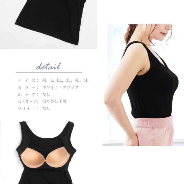 大きいサイズ カップ付きタンクトップ M - 5L [メール便不可](R-03)【M L LL 3L 4L 5L キャミソール タンクトップ ストラップ隠し 無地 大きいサイズ シンプル 下着 レディース インナー Gカップ Hカップ Iカップ プチプラ 】