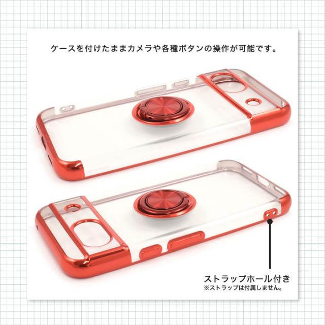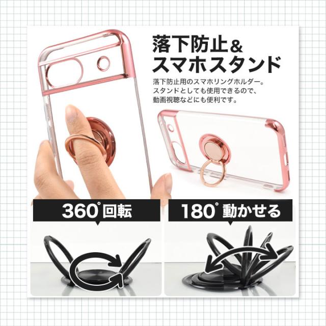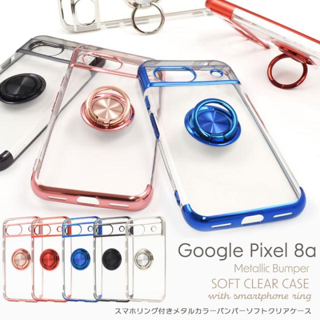 Google Pixel8a スマホリング付きメタルカラーバンパーソフトクリアケース ピンクゴールド レッド ブルー ブラック シルバー メール便送料無料