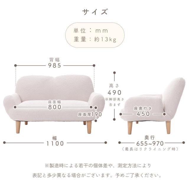 ソファー 2人掛け リクライニング ローソファー カウチソファ コンパクト 肘付き ポケットコイル 2人用ソファー おしゃれ かわいい 送料無料