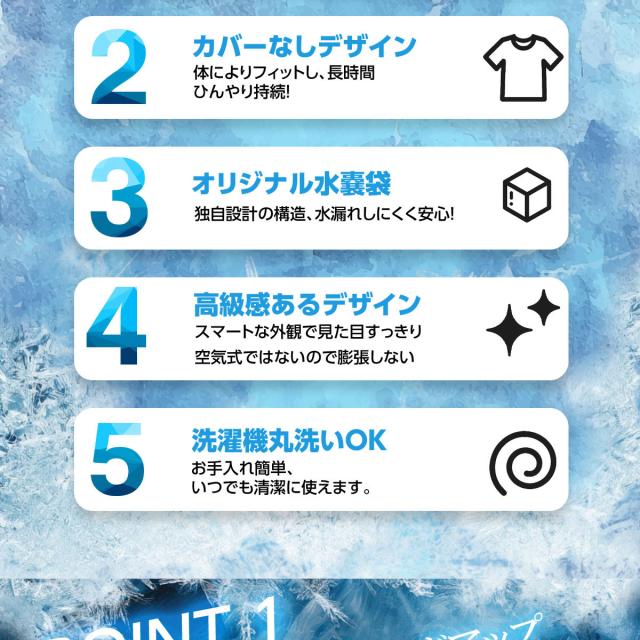 - 特色である内蔵式水管は有効です。 購入前の推測で他社主流の露出チューブ配管より密着効率が高いと踏んでの購入です。 広い冷却面積は冷感を伝えやすいのですが、気温30℃未満では腰ばかり冷えて1時間と着...