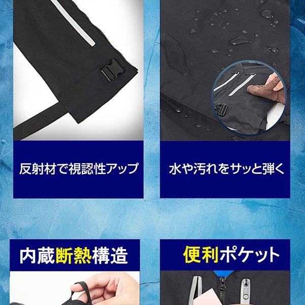 | 商品仕様 | サイズ:肩幅42cm、前裾幅41.5cm、後裾幅39cm、着丈52cm カラー:ブラック/ Black 材質(服の本体):ナイロン 材質(内タンク):70D TPUポリエーテル複合布 材質(断熱層):5mmXPEリフレクティブフィルム 材質(バックル):ABSプラスチック 正面ファスナーの長さ:19 cm 内部ポケットサイズ:17cmx25cm 水ポンプの出力/流量:出力:5V 120mA/流量:400-500ml/分 |