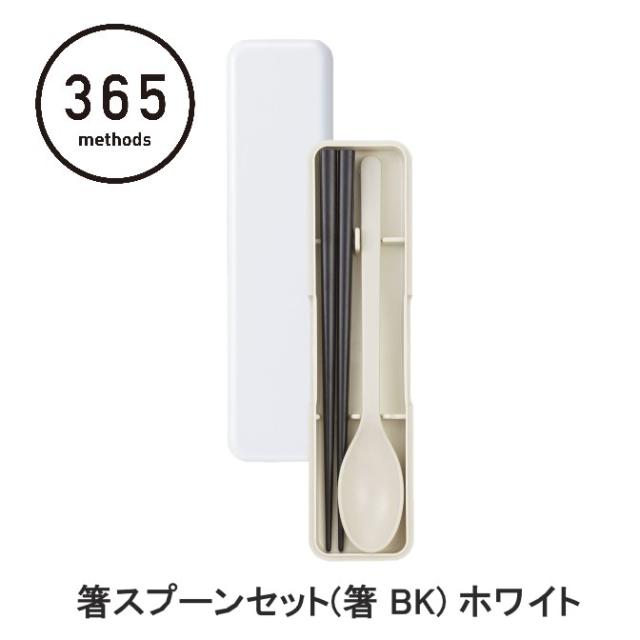 365methods シンプルランチシリーズ 箸スプーンセット(箸 BK) ホワイト 43730 送料無料 箸 スプーン セット 箸箱 携帯用 お弁当 弁当箱 シンプル 日本製