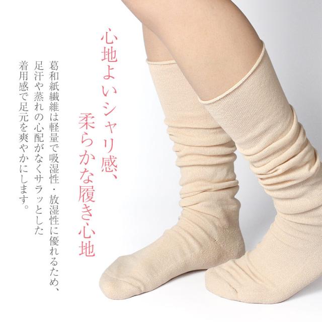 レディースソックス ゆったりソックス パイル 履き口ゆったり クシュクシュ ルーズソックス むれないくつした 夏用靴下 夏くつした さらさらくつした 涼しい靴下 冷え取り靴下 パイル 重ね履き 咲良史歌鹿 葛和紙 葛和紙繊維 和紙繊維 葛更紗 高機能繊維 エコな繊維 リユース繊維 太陽ニット株式会社 日本製