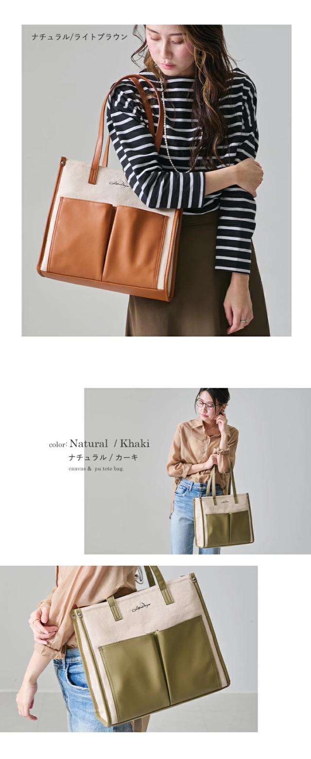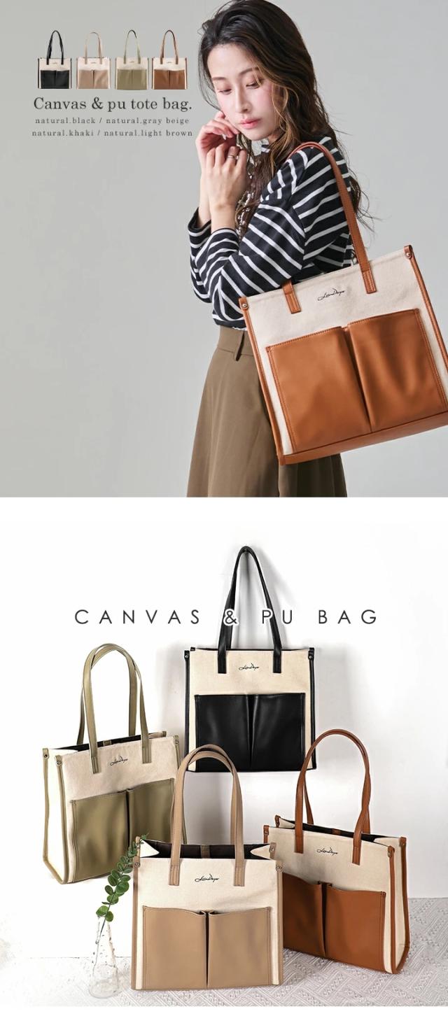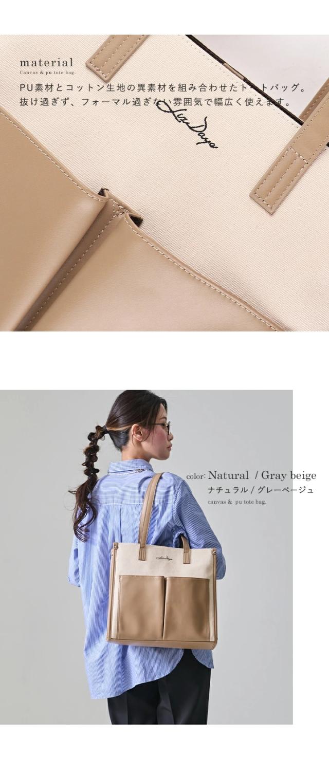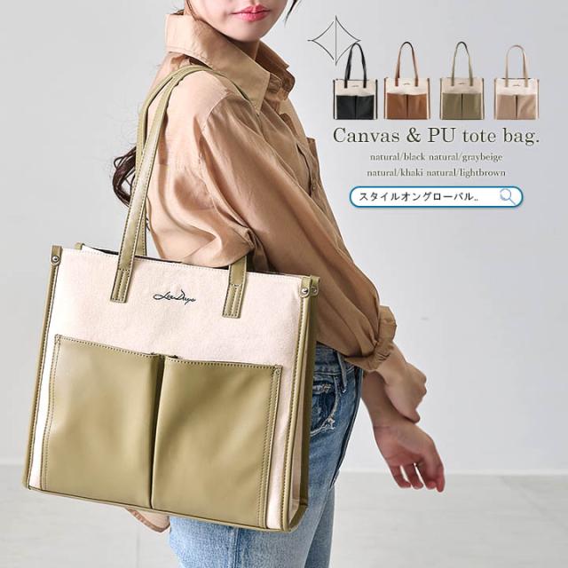 キャンバス トートバッグ 大容量 レディース トート 帆布 PU 異素材 大きめ A4 軽量 キャンバスバッグ おしゃれ LIZDAYS リズデイズ 大人 キャンバストート かばん 肩掛け 通勤 通学 お出かけ 自立 バイカラー モダン エレガント フォーマル【lz-71616】