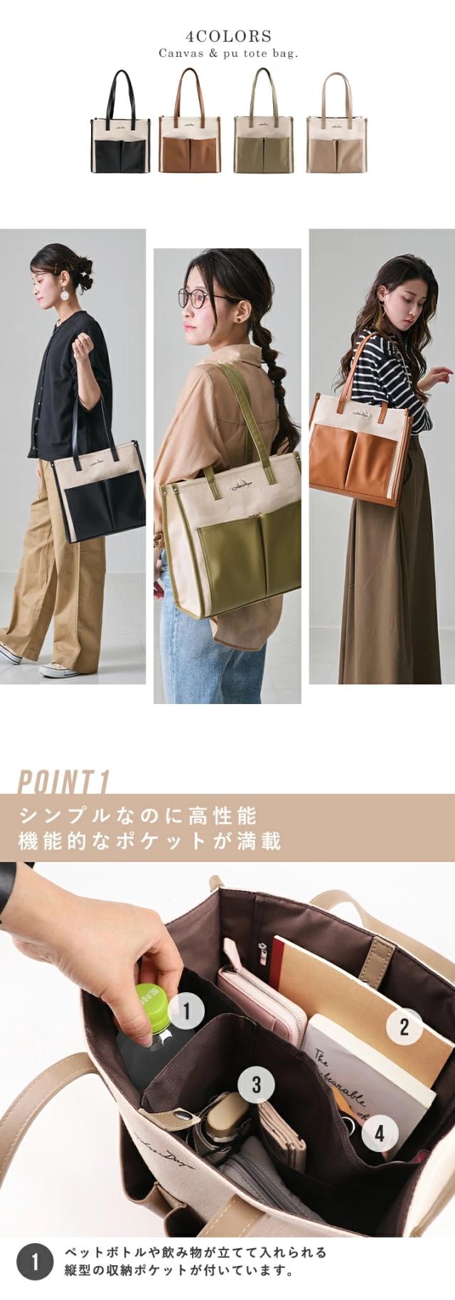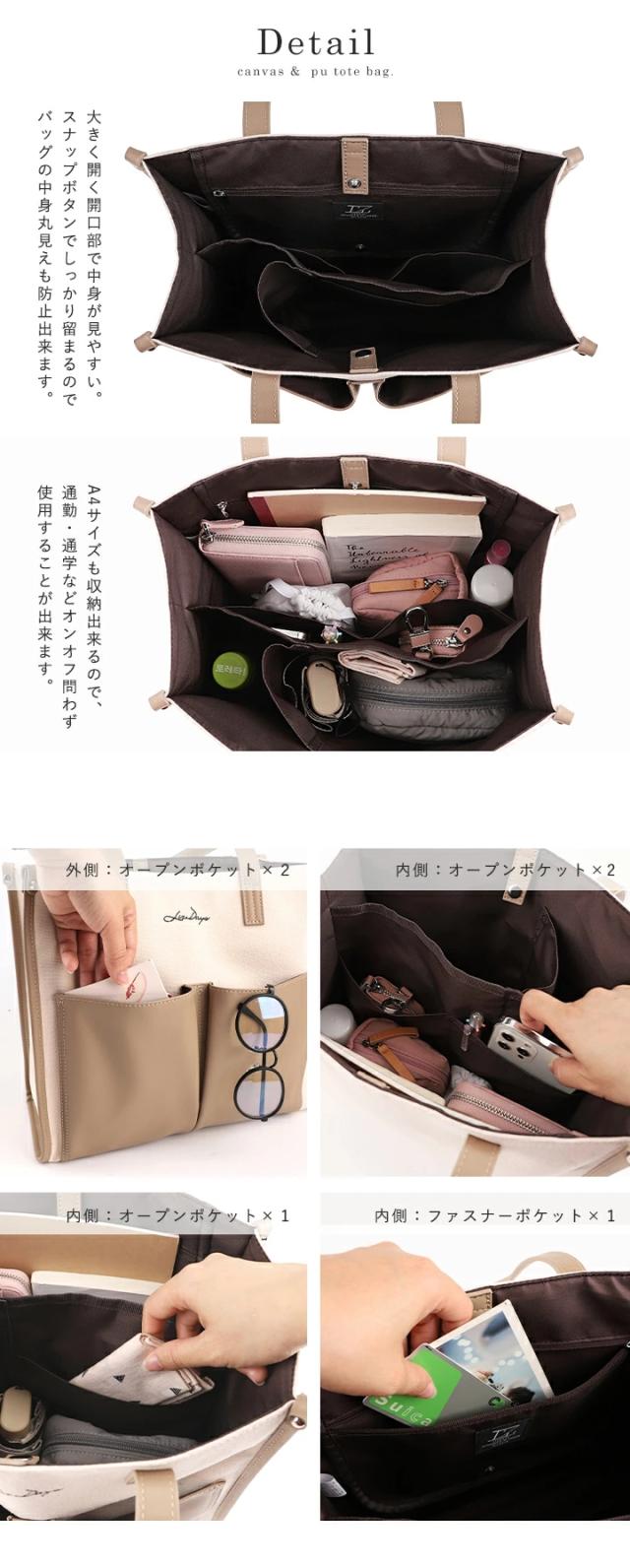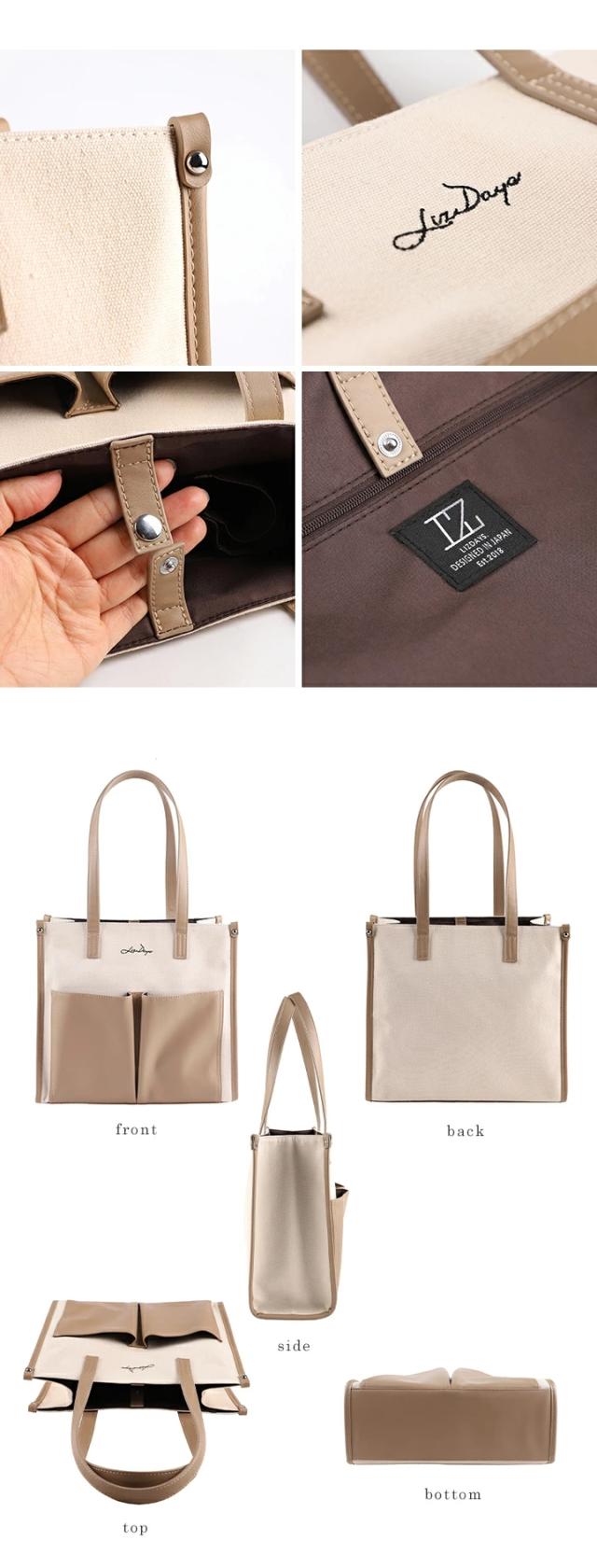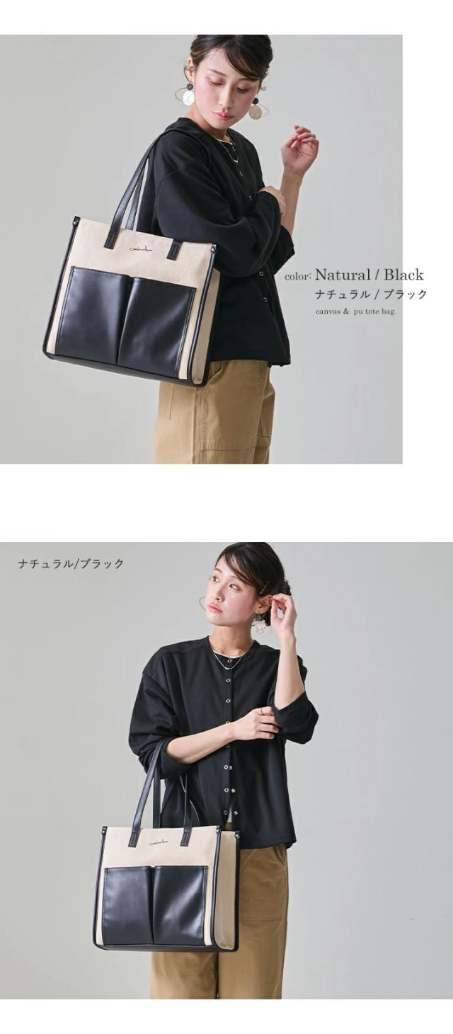 キャンバス トートバッグ 大容量 レディース トート 帆布 PU 異素材 大きめ A4 軽量 キャンバスバッグ おしゃれ LIZDAYS リズデイズ 大人 キャンバストート かばん 肩掛け 通勤 通学 お出かけ 自立 バイカラー モダン エレガント フォーマル【lz-71616】