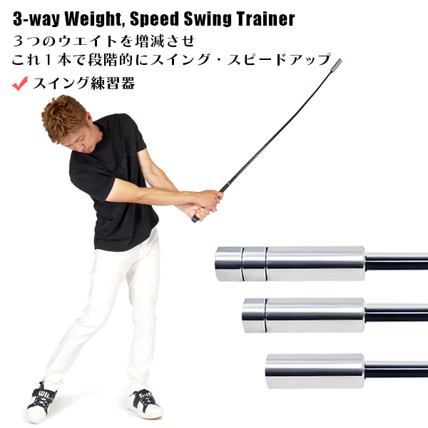 ゴルフ練習器具 3WAY ウエイト調整付 スピード スイング シャフト ヘッドスピードアップ スイング練習器具 飛距離アップ 3段階レベルアップ ヘビー ミッド ミッドライト ライト スピードアップ練習 素振り棒 スイングスティック コモコーメ