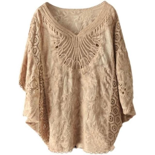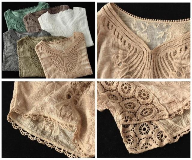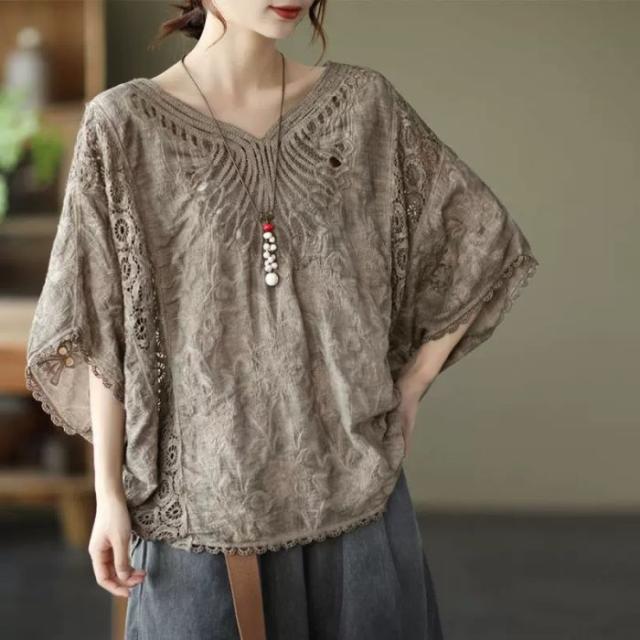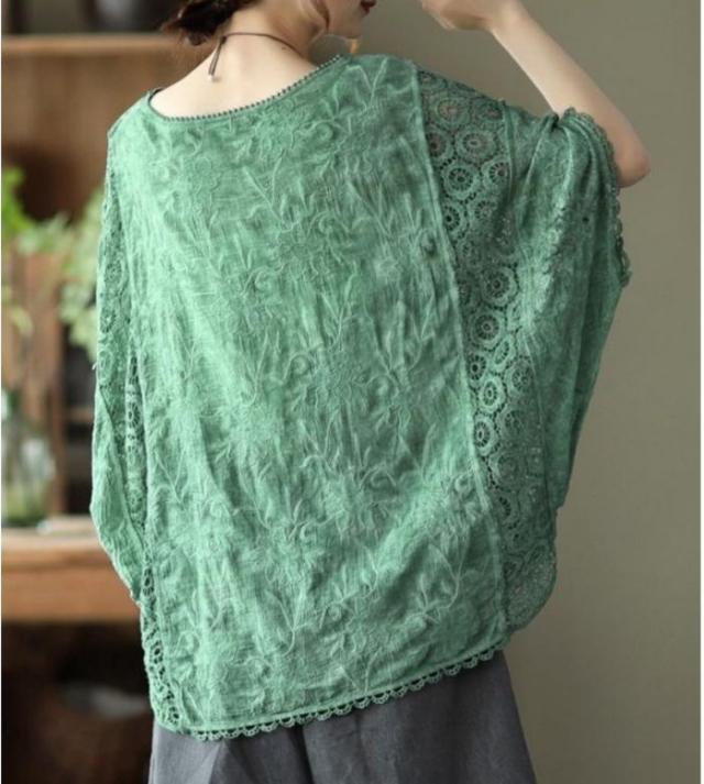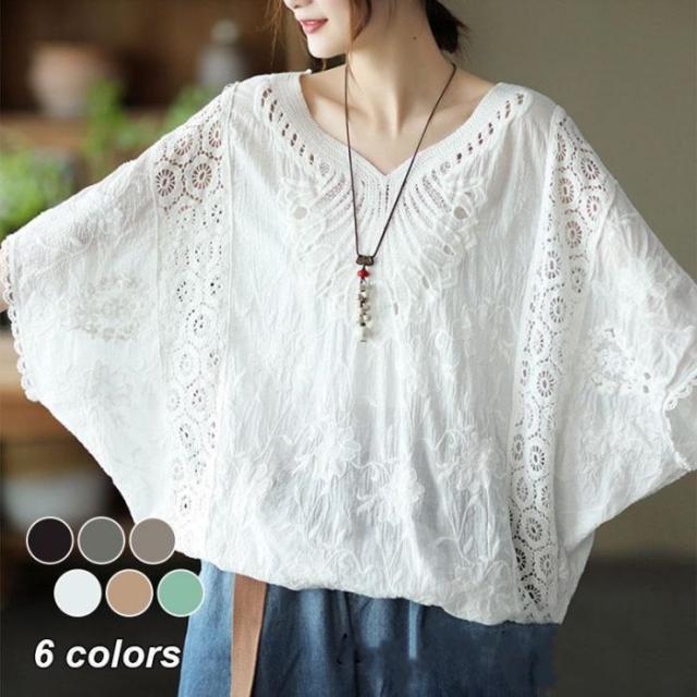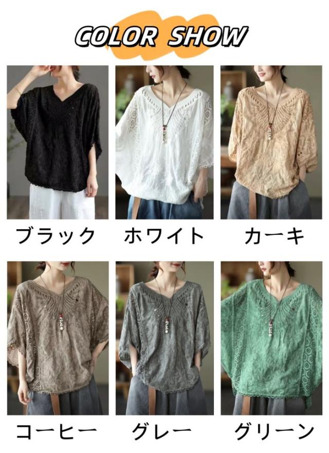 tシャツ レディース 大きいサイズ トップス ブラウス 7分袖 半袖 ゆったり レース 刺繍 オーバーサイズ 夏新作