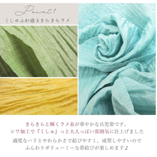 きらきら光るラメ糸が華やかな『しわ兵児帯』でございます。