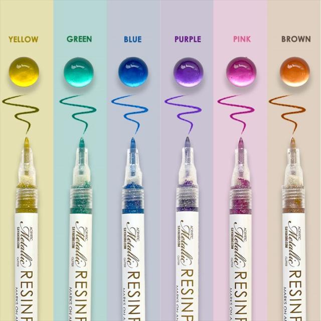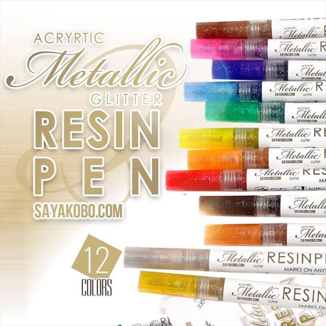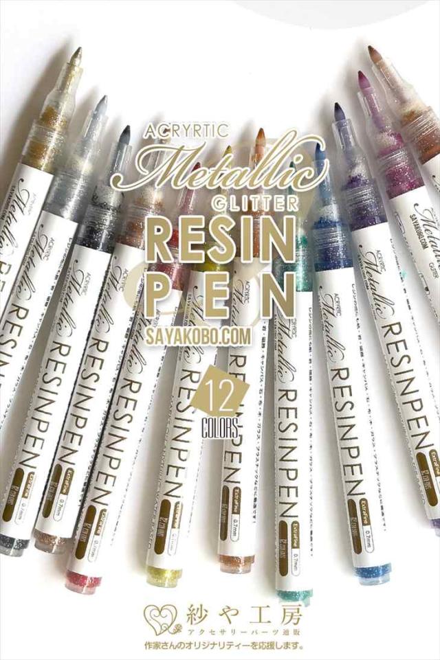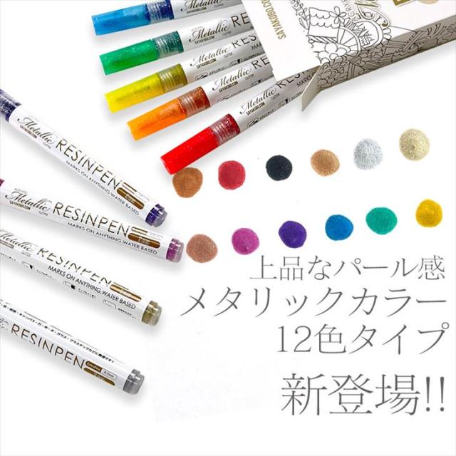 レジンペン メタリック グリッター 12色 太くも細くも描けちゃうよ レジン ペン カラーペン 丸ペン 水性 着色 ゴールド ラメ ミラー モールド エンボスヒーター シリコンモールド カラー 細ペン お絵描き 子供 さや工房 手作り 卸 おすすめ アクセサリー パーツ 問屋