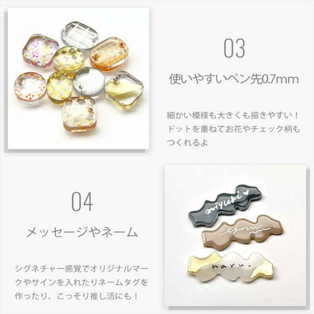 レジンペンは、硬化後のレジン表面に直接描くことができ、好きなデザインや細かい模様を自由自在に表現できます♪