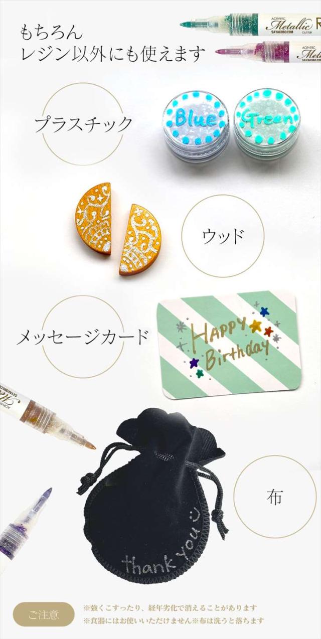 - いつもお世話になってます 前回のレジンペン18色を愛用している者です 新たにメタリックが出たことを知り、迷わず買いましたが 商品には特に不満はありません 欲を言えばもっと極細なペン先が欲しいですが…...