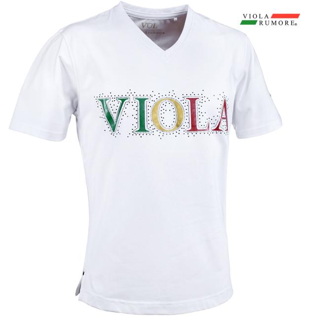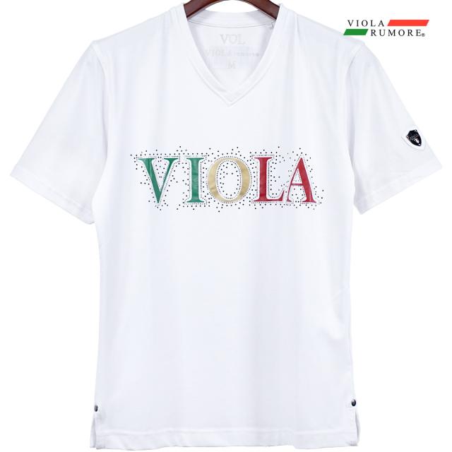 メール便可/1枚まで VIOLA rumore ヴィオラ ビオラ Tシャツ 半袖 Vネック ラインストーン ロゴ メンズ(ホワイト白) 42333