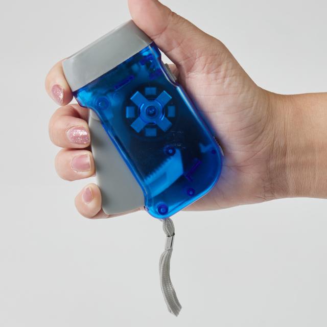 ハンドルを繰り返しにぎるだけで発電する懐中電灯です。電池不要なので、いつでもどこでも使用できて、緊急時・災害時にあると安心です。