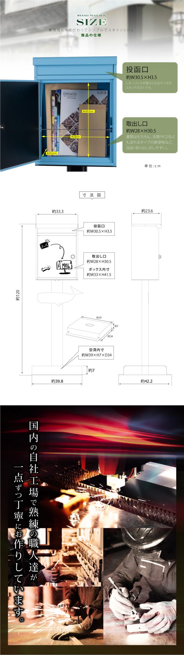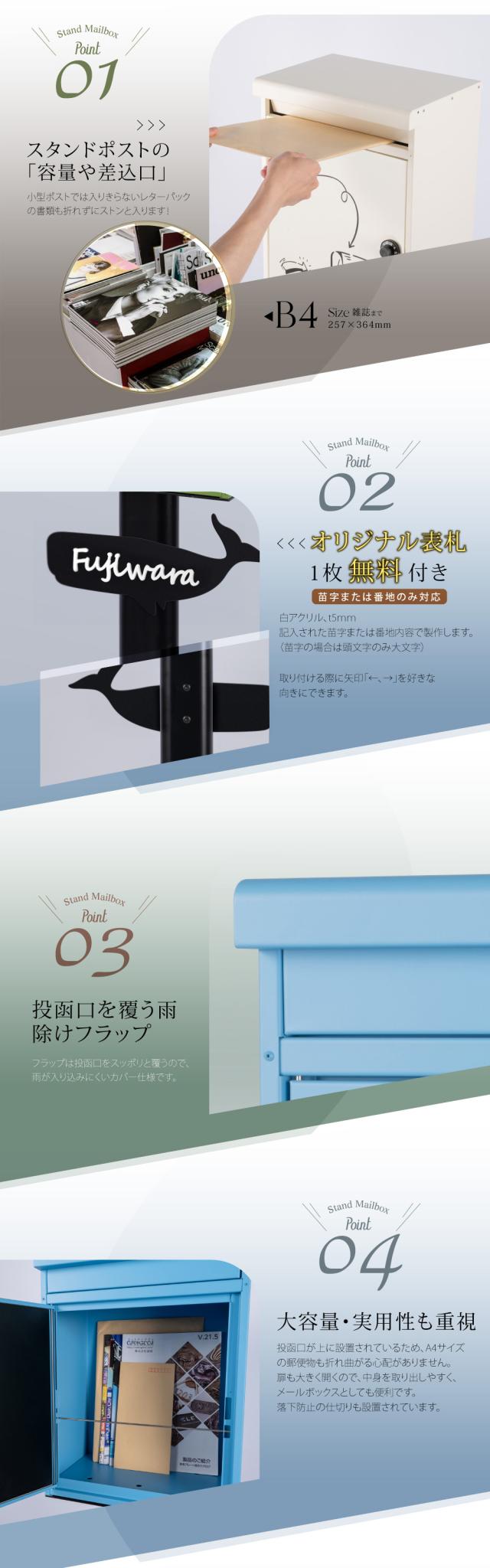 【オリジナル表札1枚無料付き】日本製 ポスト 置き型 <特許庁意匠登録>選べるカラー メールボックス B4対応 郵便ポスト おしゃれ スタンドポスト 北欧 一戸建て用 屋外 玄関 大容量 ダイヤル錠 新聞受け 郵便受け 戸建て 新築