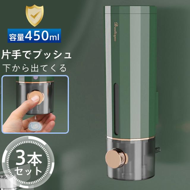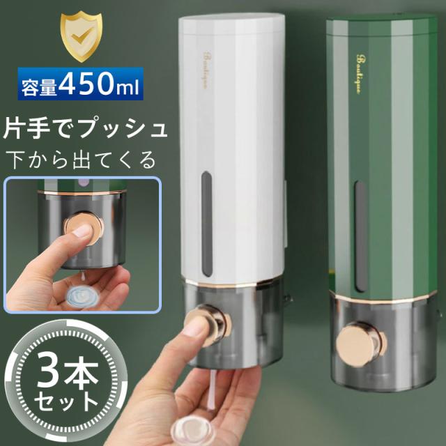 シャンプーディスペンサー シャンプーボトル 3本セット ディスペンサー 下から出る 浮かせる収納 壁掛け 壁面 シールフック 詰め