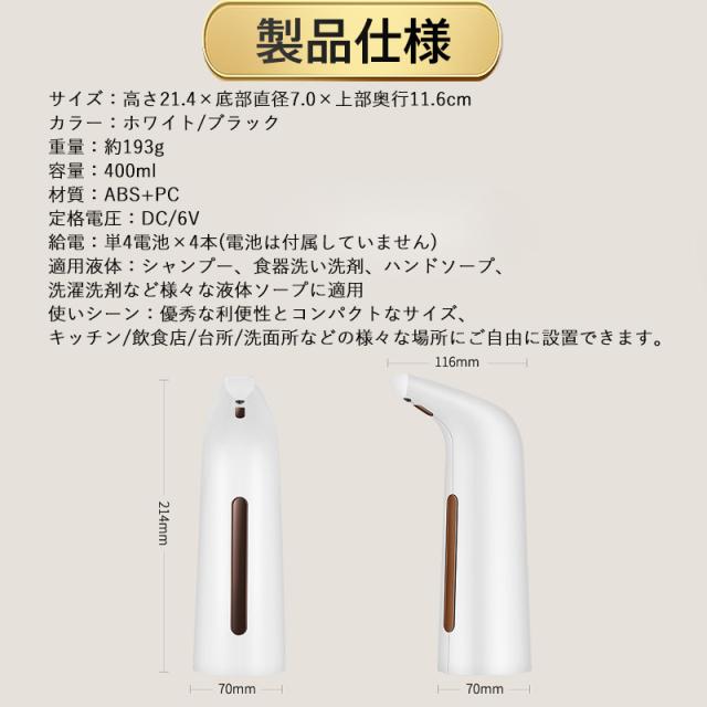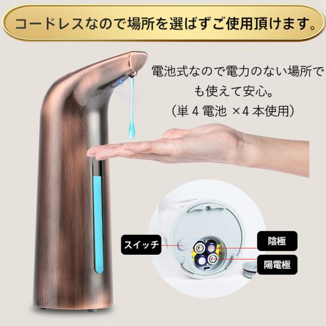 ソープディスペンサー ハンドソープ 400ml 非接触式 自動 液体 電池式 リキッド ハンドソープ 食器用洗剤 オートディスペン