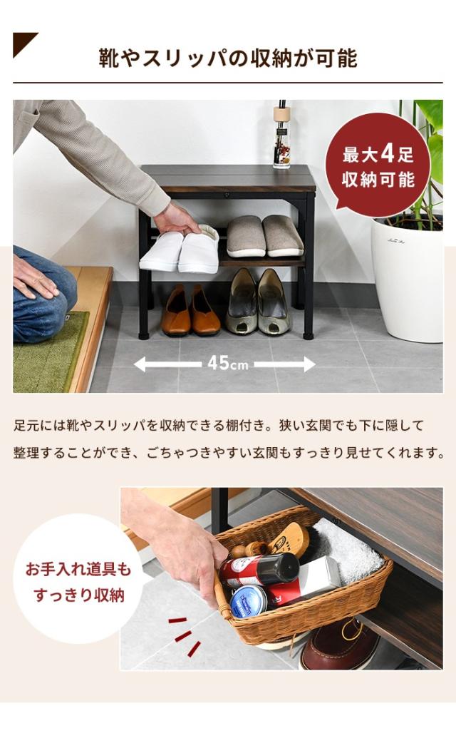 【値下げ】シューズラック 棚付き 玄関ベンチ 幅45 下駄箱 スリッパラック 腰掛け イス 収納ラック 玄関 リビング シンプル おしゃれ