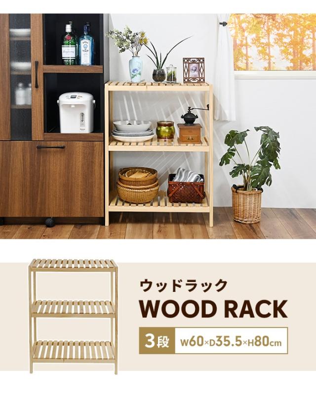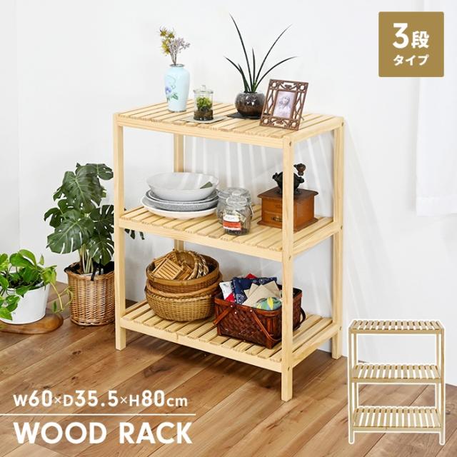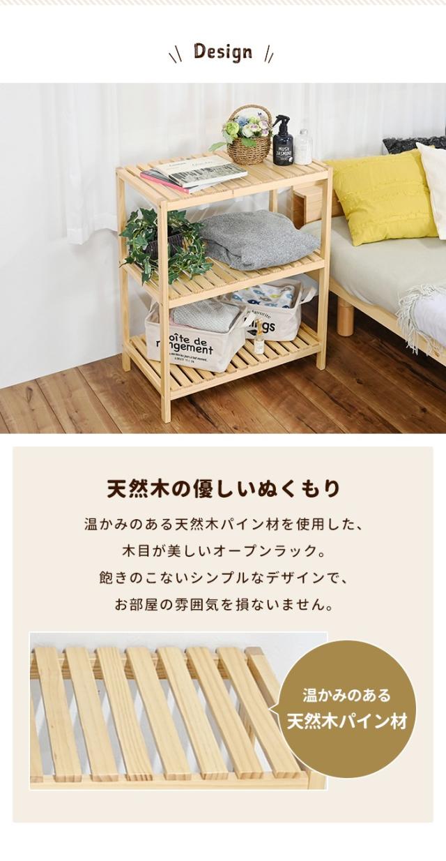 ラック 3段 天然木 オープンシェルフ 収納棚 幅60 おしゃれ 北欧 木製ラック 本棚 収納 ディスプレイ ナチュラル シンプル