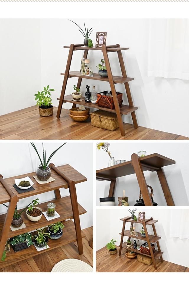 キーワード: オープンラック 3段 天然木 木目調 棚 上質 高級感 落ち着きある空間 ブラウン 組立簡単