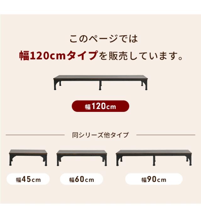 | 【玄関台】 ● 幅45cm ● 幅60cm ● 幅90cm ● 幅120cm ※このページは[玄関台 幅120cm]を販売しております。 |