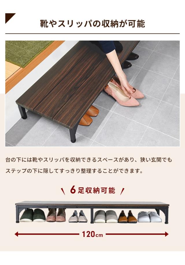 【値下げ】玄関台 幅120 台 踏み台 ステップ 下駄箱 シューズラック 玄関収納 木目模様 スチール モダン シンプル オープン おしゃれ