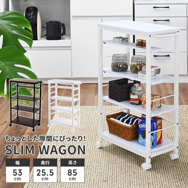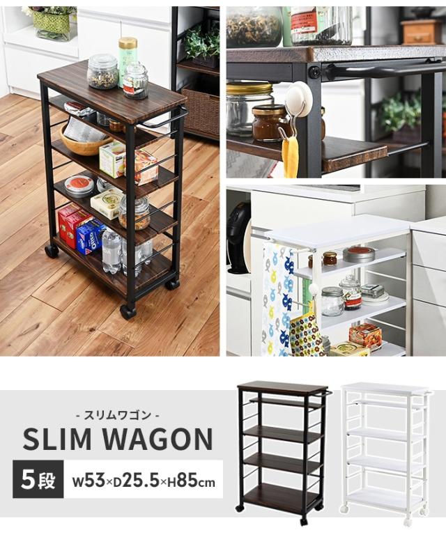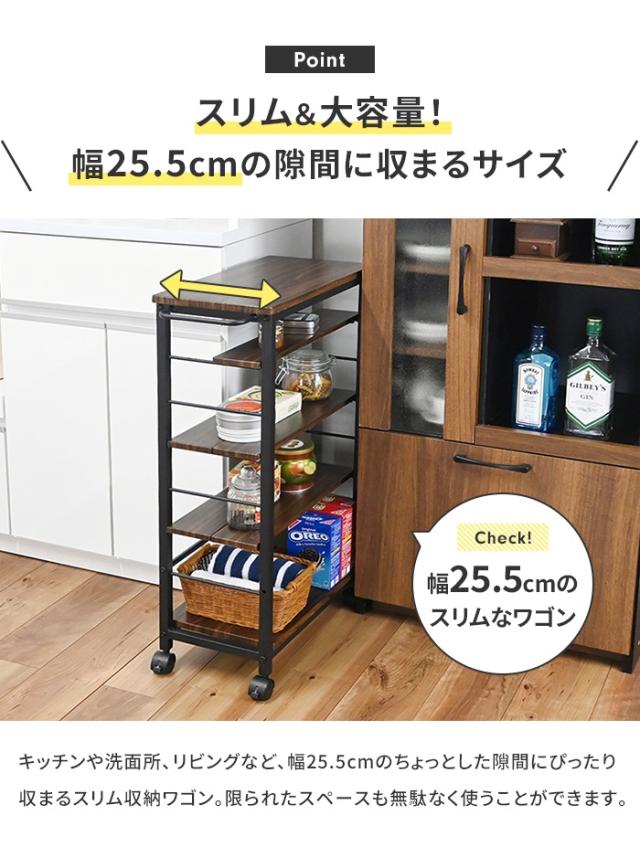 キッチンワゴン スリムワゴン キャスター付き 隙間収納 5段 奥行25.5 収納ラック 棚 取っ手付き シンプル おしゃれ 収納