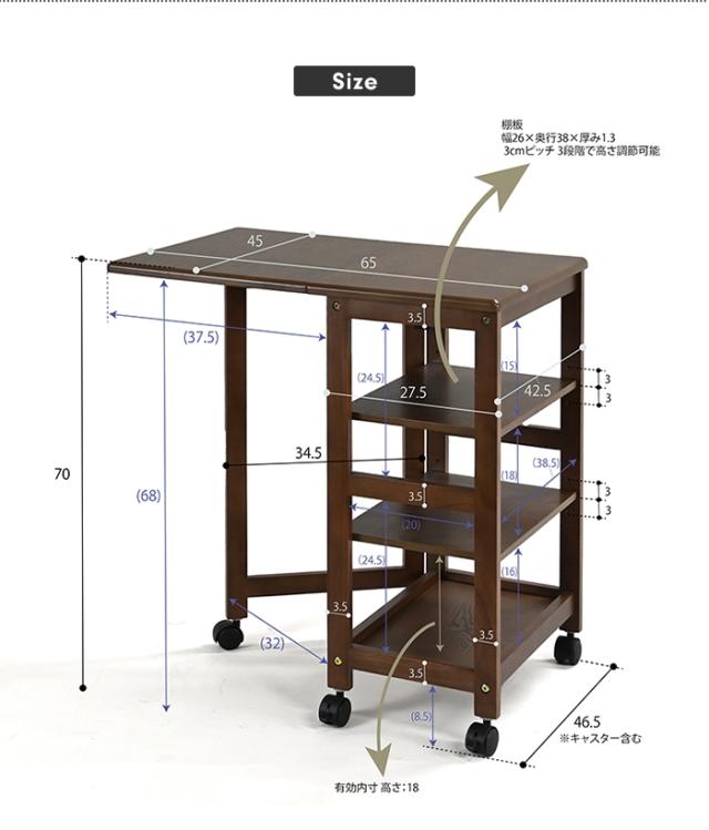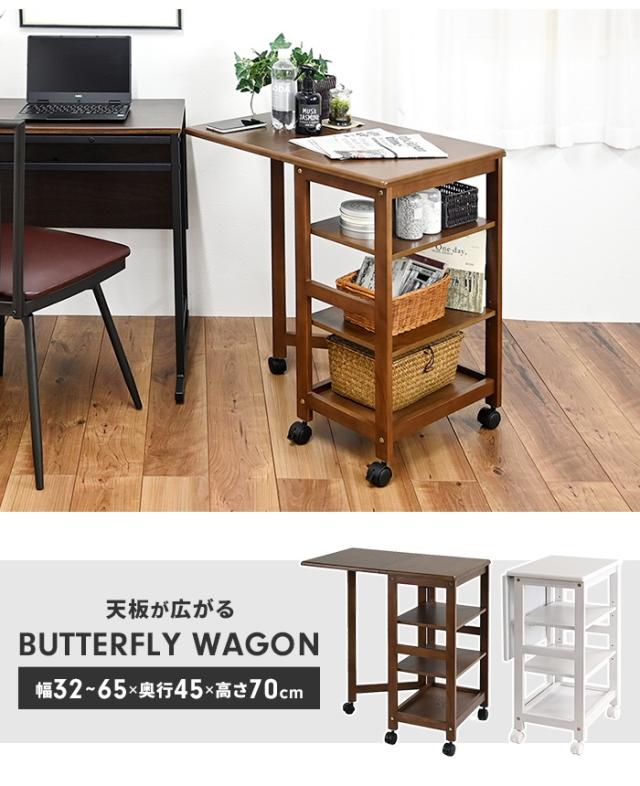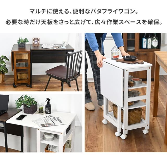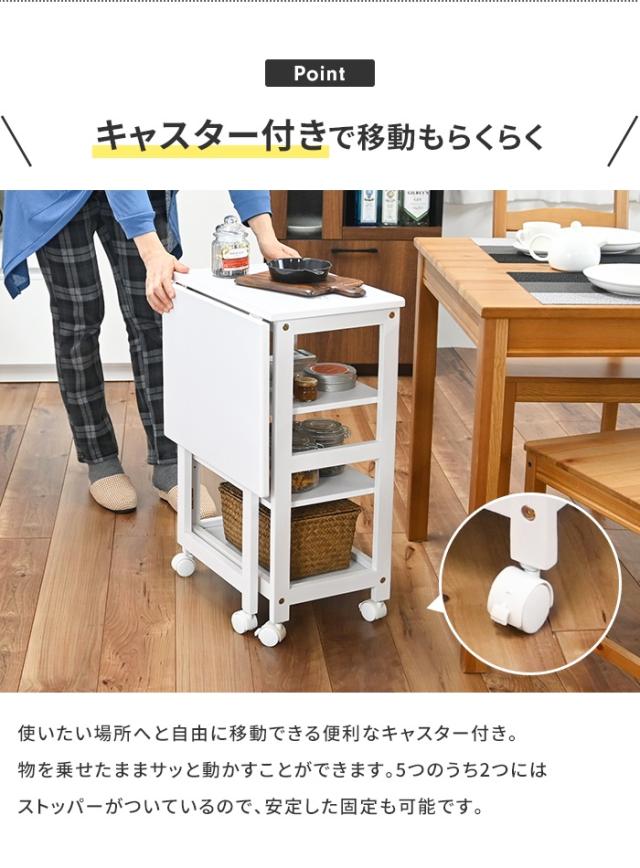 キッチンワゴン バタフライ天板 キャスター付き 幅65 スリム マルチラック デスク 作業台 キッチン収納 伸縮 シンプル 便利