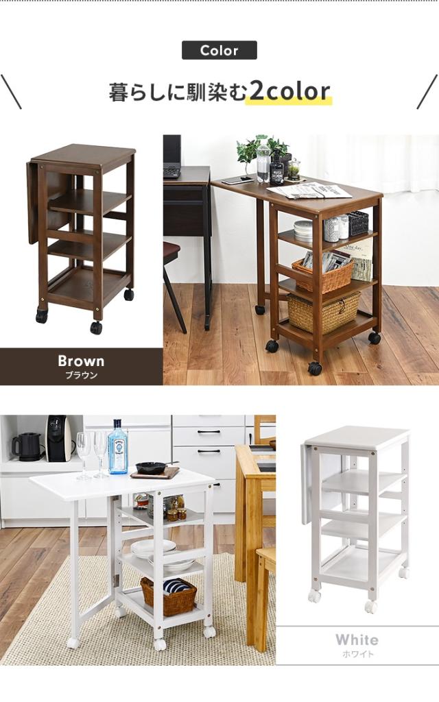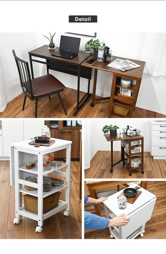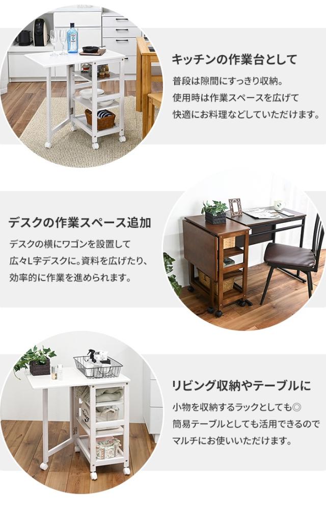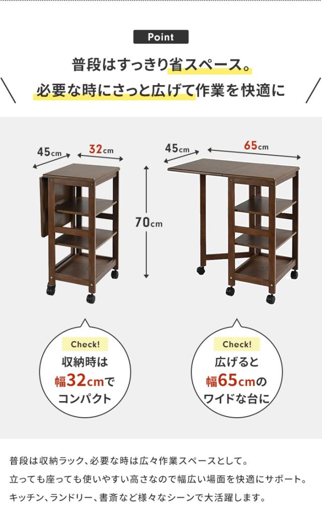 | 必要な時だけ天板をさっと広げて、広々作業スペースを確保できるので便利です。 キッチン・ランドリー・書斎など、様々なシーンで活用できます。 |