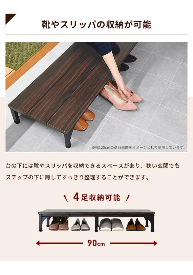 【値下げ】玄関台 幅90 台 踏み台 ステップ 下駄箱 シューズラック 玄関収納 木目模様 スチール モダン シンプル オープン おしゃれ
