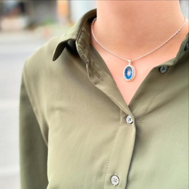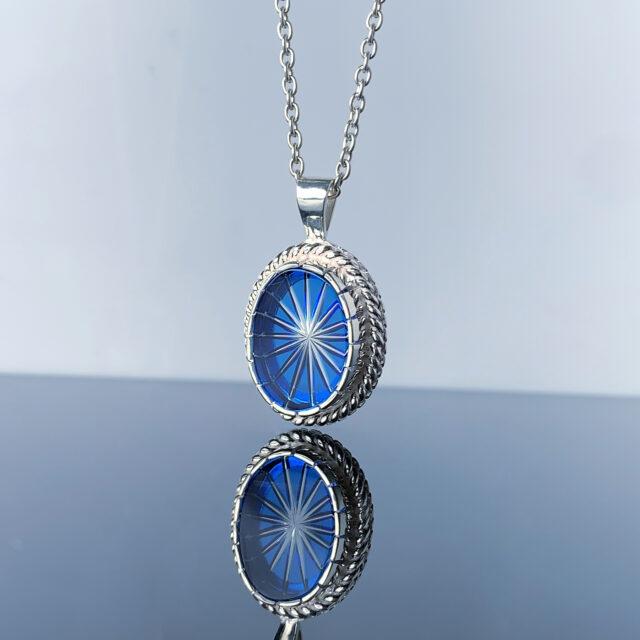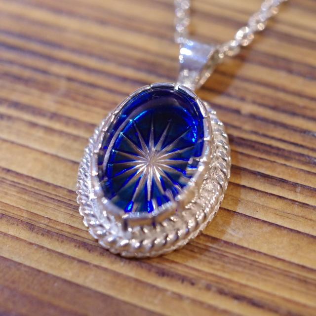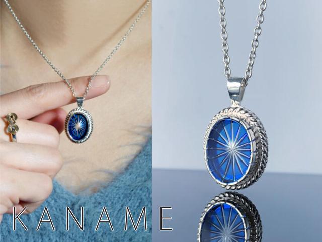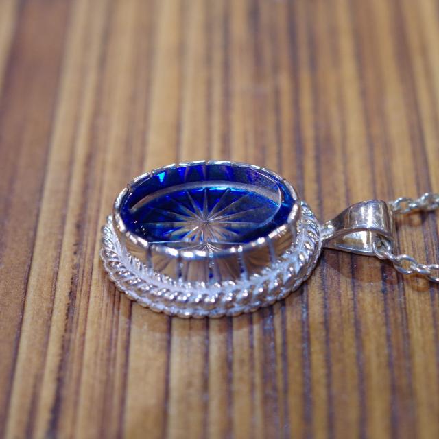KANAME カナメ 伝統工芸 切子ネックレス 菊花紋【碧】KN-026 シルバー925 チェーン付き ペンダント 和柄 ネックレス メンズ レディース