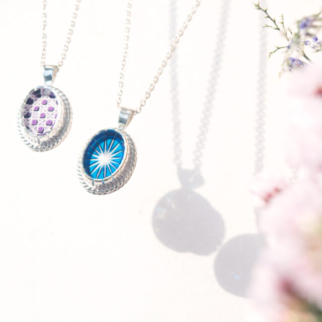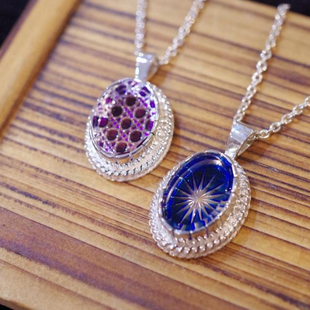 東京の伝統工芸である「切子」を宝石のように纏わせたシルバーネックレス。