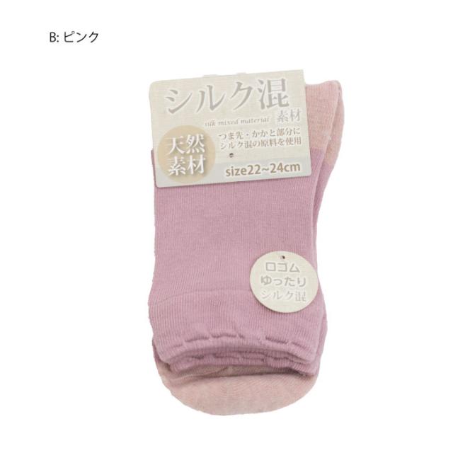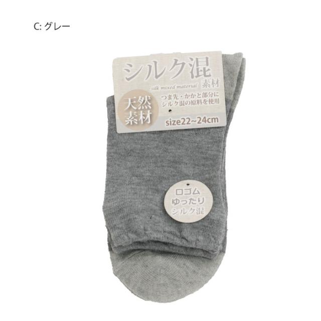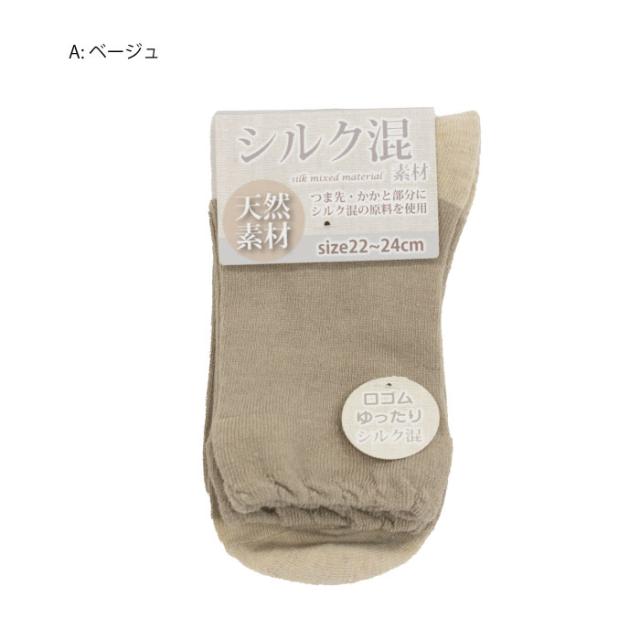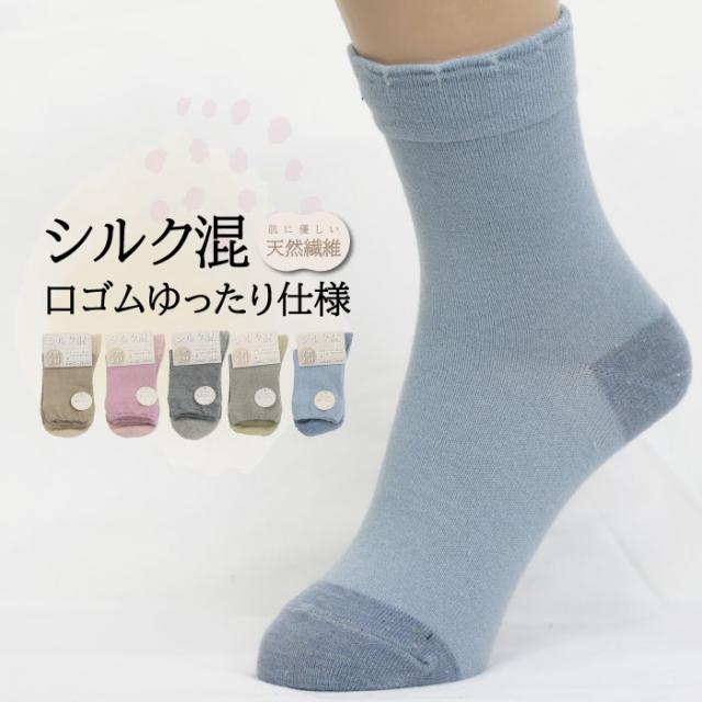 メール便2足まで シルク混 口ゴムゆったり 無地 ゆったり ソックス 絹 締め付けない 楽ちん靴下 シニアタイプ ショートソックス 61944-01 LegStyle