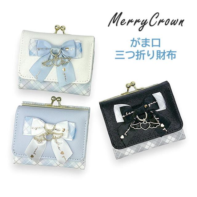 キッズ 財布 女の子 三つ折り財布 mce-305 Merry Crown メリークラウン リボン天使シリーズ ミニ口金財布 三つ折り財布 がま口財布 ミニ財布 コンパクト財布 さいふ かわいい おしゃれ 女の子 女子 ガールズ 小学生 中学生 小学校 低学年 高学年 旅行 修学旅行 通学 通塾