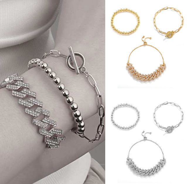 ★ 3点セット キラキラ ブレスレット ★ レディース ジュエリー バングル 腕輪 足首飾り ペンダント チェーン アクセサリー 金 銀 K80-4