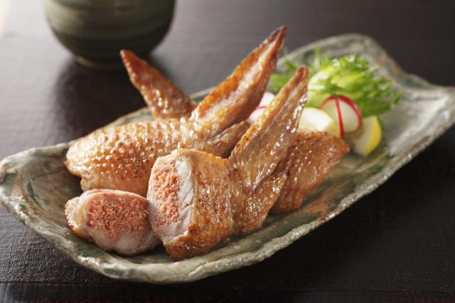 手羽先に明太子を詰めました。お酒のおつまみや、ご飯のおかずなど食卓のあらゆる場面で重宝します。