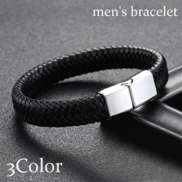 ブレスレット バングル メンズ アクセサリー 編み込み 縄 ロープ レザー調 マグネット 磁気バックル シンプル おしゃれ プレ