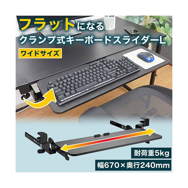 商品仕様: サンコー フラットになるクランプ式キーボードスライダーL CLKETLHBK (お客様組立品)