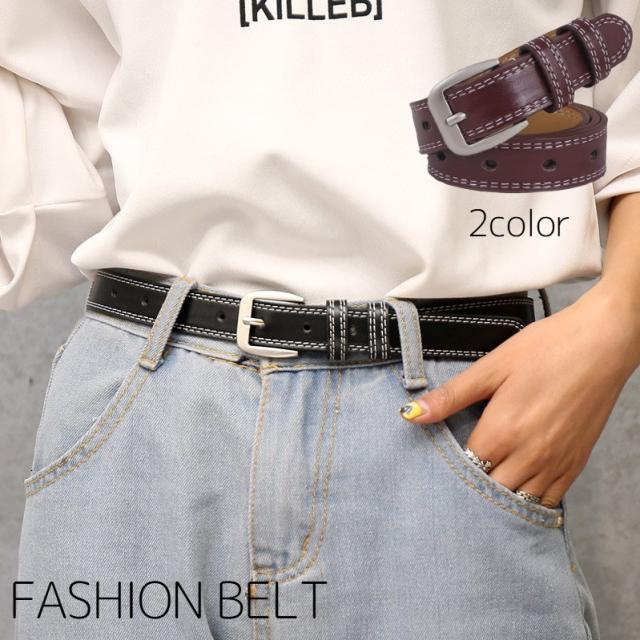 ベルト レディース 女性 バックル レザー調 穴あき ウエストマーク ステッチ PU フェイクレザー カジュアル おしゃれ きれ