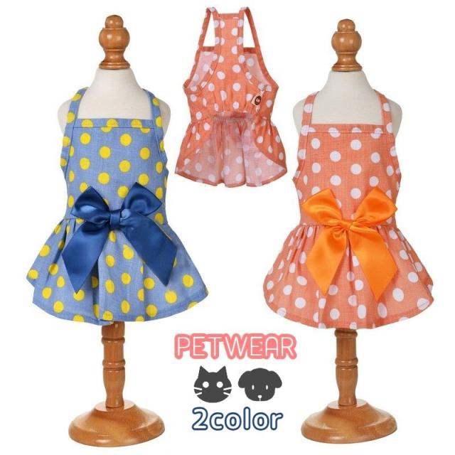 ペットウェア ワンピース 犬服 猫服 ドッグウェア 洋服 袖なし キャミワンピ プルオーバー 水玉 ドット柄 リボン 犬の服 猫