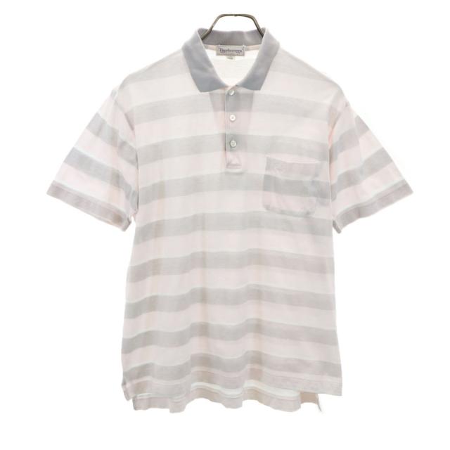 バーバリーズ 90s オールド ボーダー柄 半袖 ポロシャツ L グレー系 Burberrys メンズ