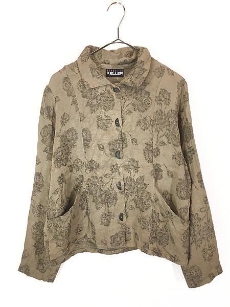 レディース 古着 90s USA製 KELLER 花 フラワー 総柄 レーヨン リネン ライト ジャケット S 古着