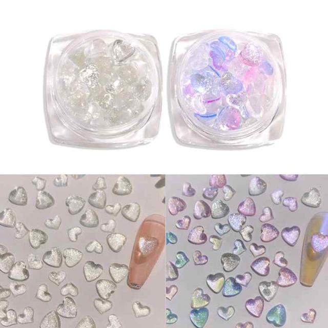 YFFSFDC ネイルパーツ ネイルツール ハート パーツ 3D 透明 レジン ネイル DIY デコパーツ 5mm 6mm 約200個 (A)