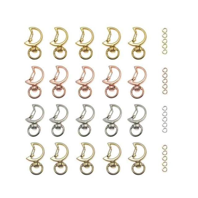 YFFSFDC キーホルダー金具 20個 回転カン付き ワンタッチキーホルダー カワイイ DIY用パーツ 手作り キーリング シルバー ゴールドなど4色 (月のキーホルダー)
