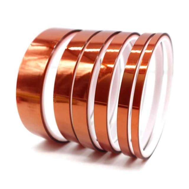 【ポリイミド製】耐熱テープ耐熱性に優れたポリイミド「カプトン」フィルムをベースに耐熱性リコン粘着剤を塗布したテープです。耐熱温度:250℃「連続」、320℃「短期耐温」。