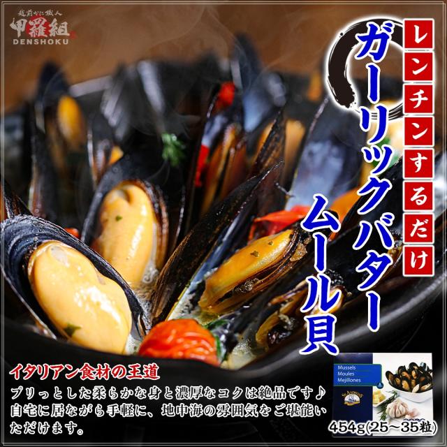 殻付ボイルムール貝(ガーリックバター味) 454g(25-35粒入り) ※産地:チリ産