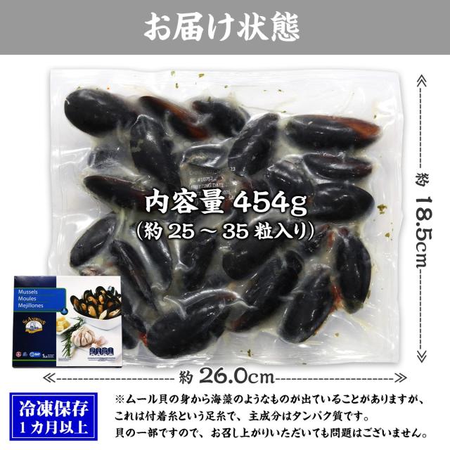イタリアン食材の王道!【訳あり(不揃い/殻欠け)】ボイル済み ガーリックバター ムール貝(ボイル/殻付き)454g(25-35粒入り) 貝 殻付き パスタ パエリア ブイヤベース 下処理済み パーティ ピザ おつま