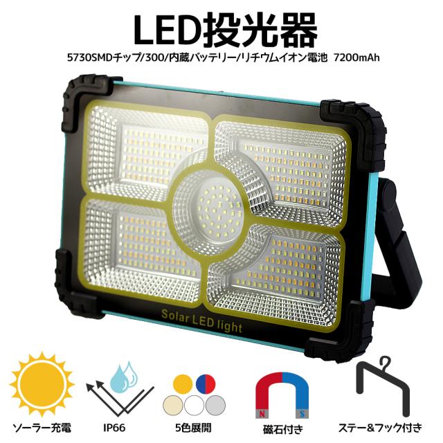 LED投光器 7200mAh ソーラー充電 LED300個 180°調整 IP66防水 防滴 宅配 コンパクト 明るい 屋内 屋外 作業灯 作業ライト ワークライト アウトドア用 投光器ledライト 照明 キャンプ 夜釣り 警示灯 防災 停電対応