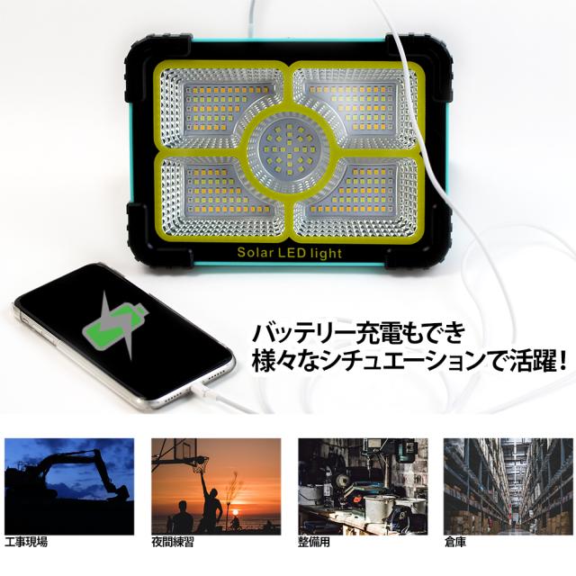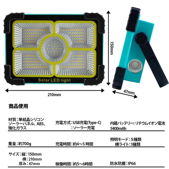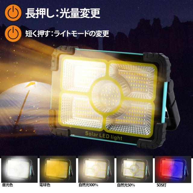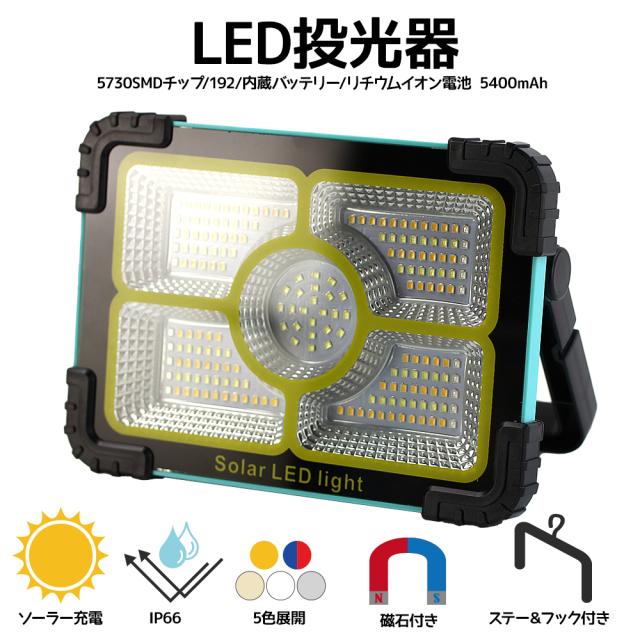 LED投光器 5400mAh ソーラー充電 LED192個 180°調整 IP66防水 防滴 宅配 コンパクト 明るい 屋内 屋外 作業灯 作業ライト ワークライト アウトドア用 投光器ledライト 照明 キャンプ 夜釣り 警示灯 防災 停電対応